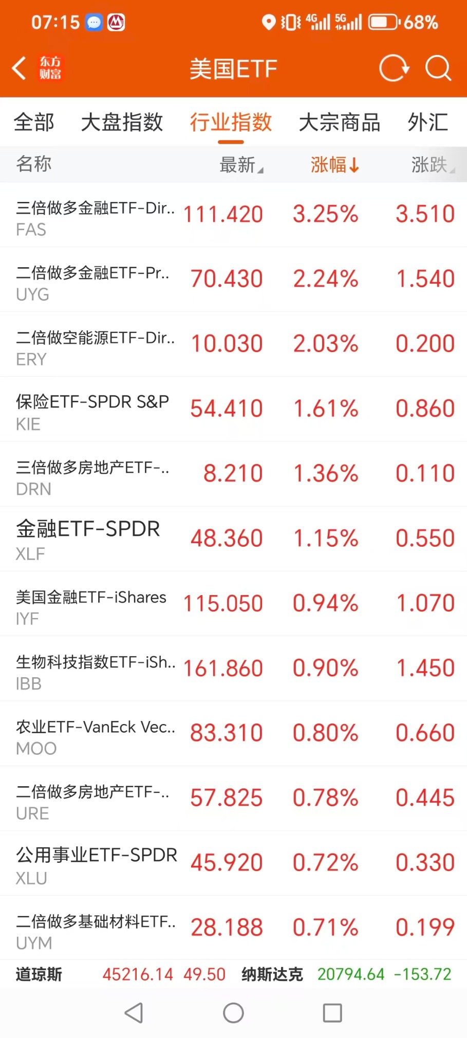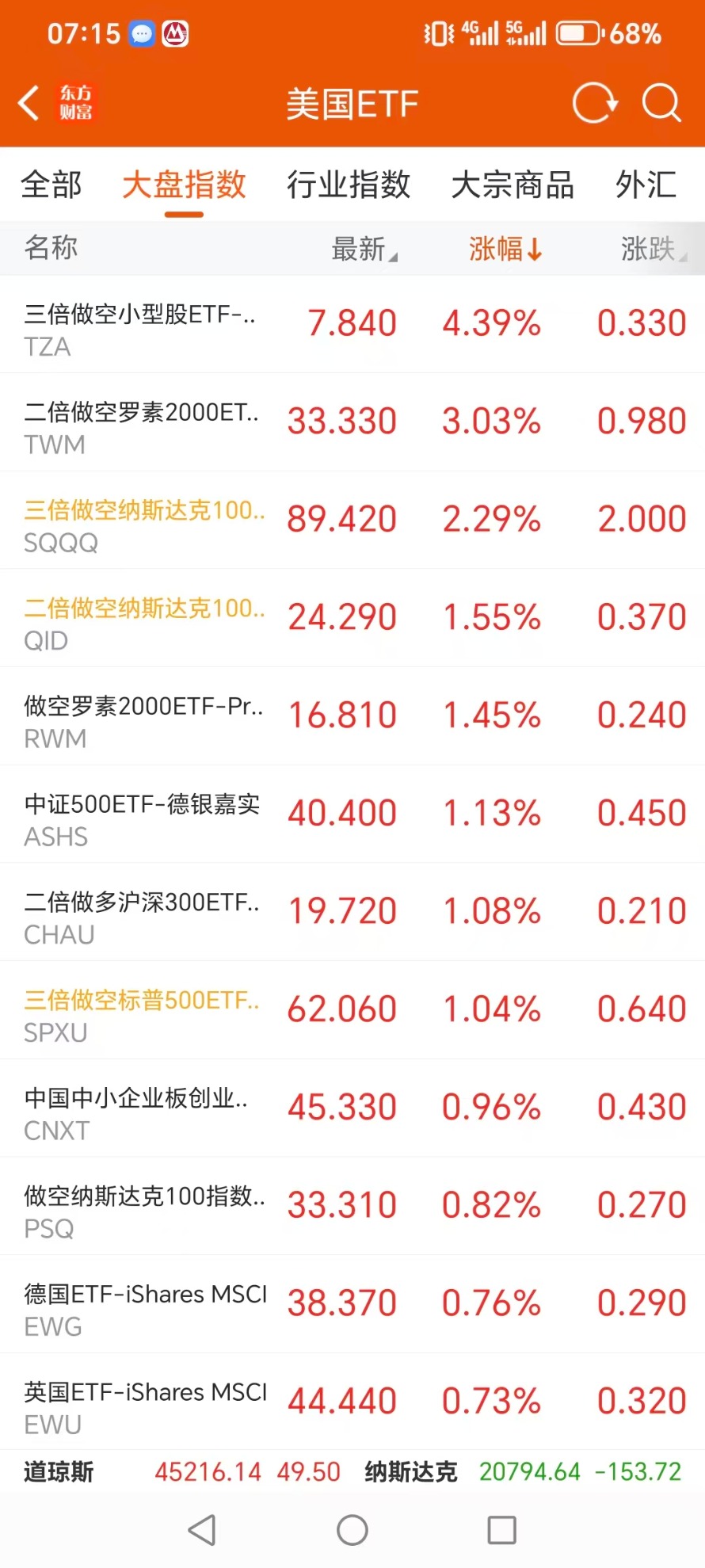 美股大型指数ETF升幅榜