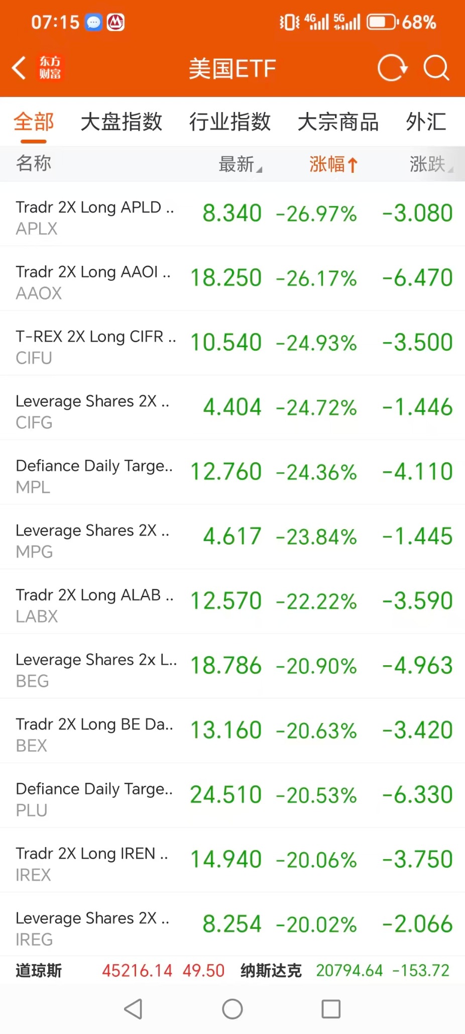 美股ETF跌幅榜
