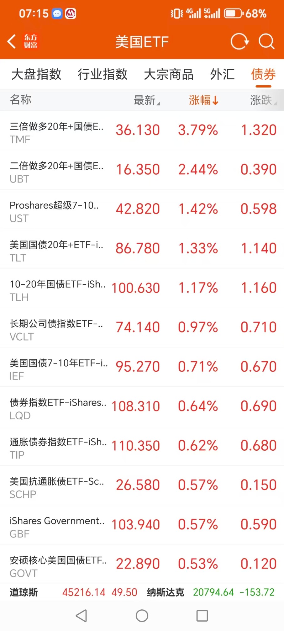 债券型ETF升幅榜