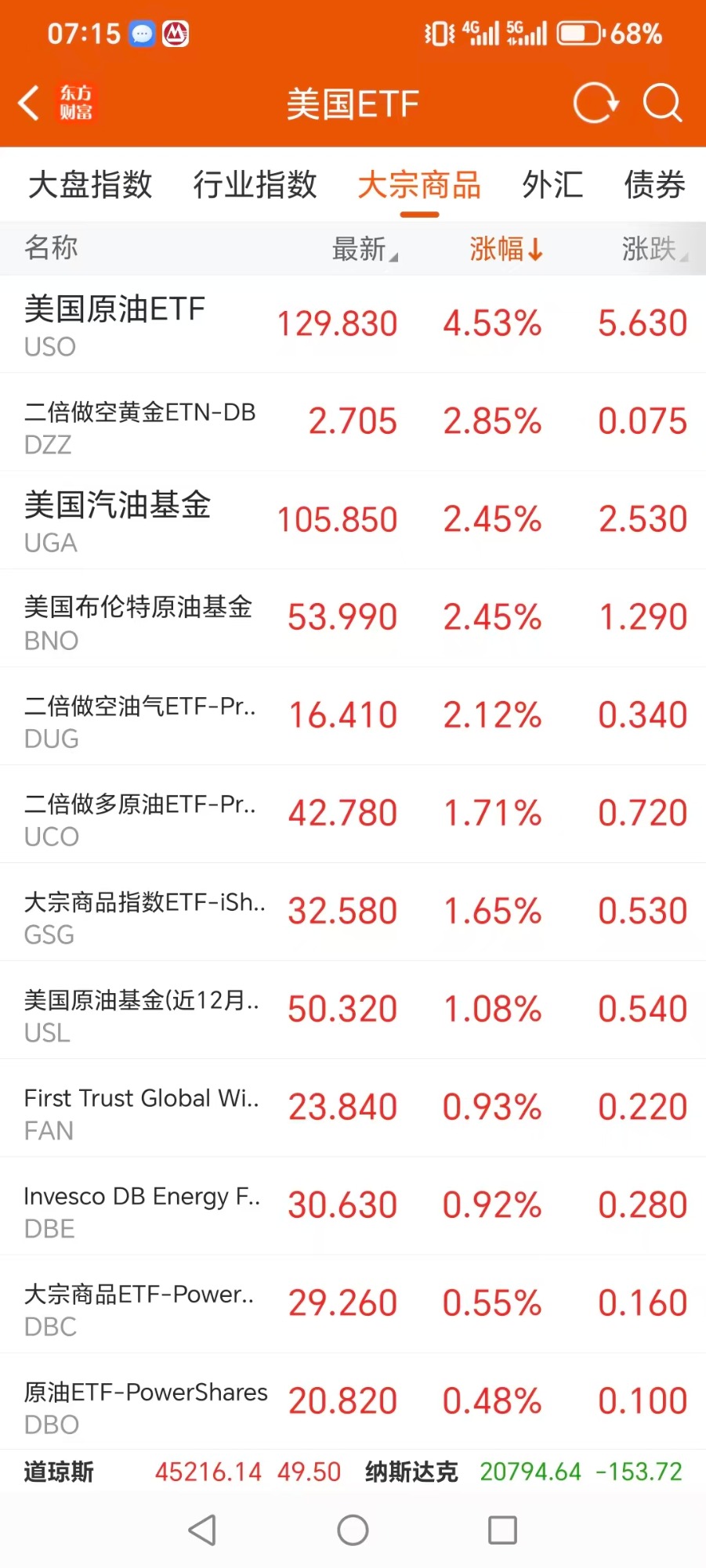 大宗商品型ETF升幅榜