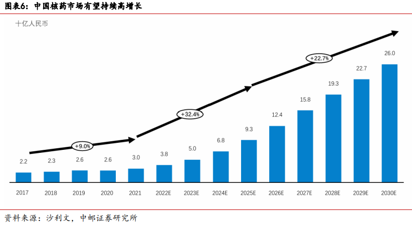 核药作为现在医学的重要组成部分,在精准治疗领域具备独特的诊疗一体化优势。近年来随着RDC药物的兴起以及Pluvicto亮眼的销售表现,核药市场关注度持续提升。