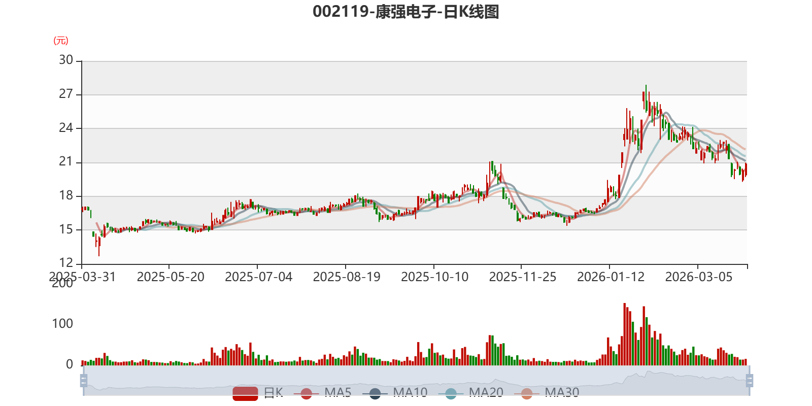值得注意的是,中登公司数据显示,截至2026年3月27日,康强电子20.71%股份处于质押状态。