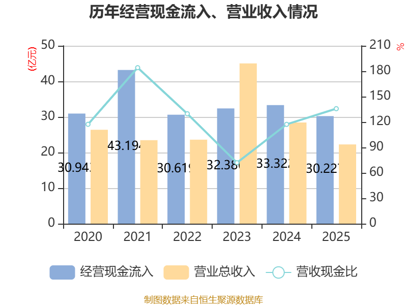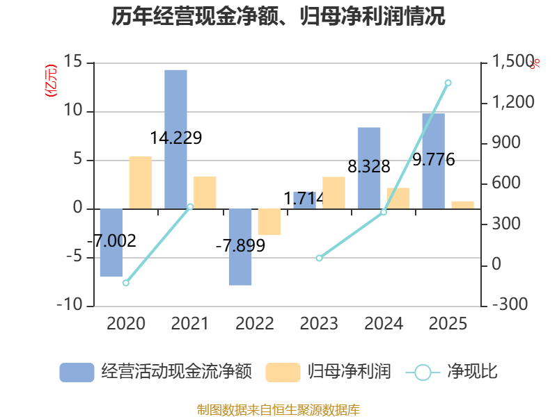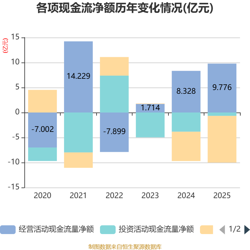 截至2025年,公司经营活动现金流净额为9.78亿元,同比增长17.4%;筹资活动现金流净额-9.34亿元,同比减少3.47亿元;投资活动现金流净额-6774.79万元,上年同期为-3.85亿元。