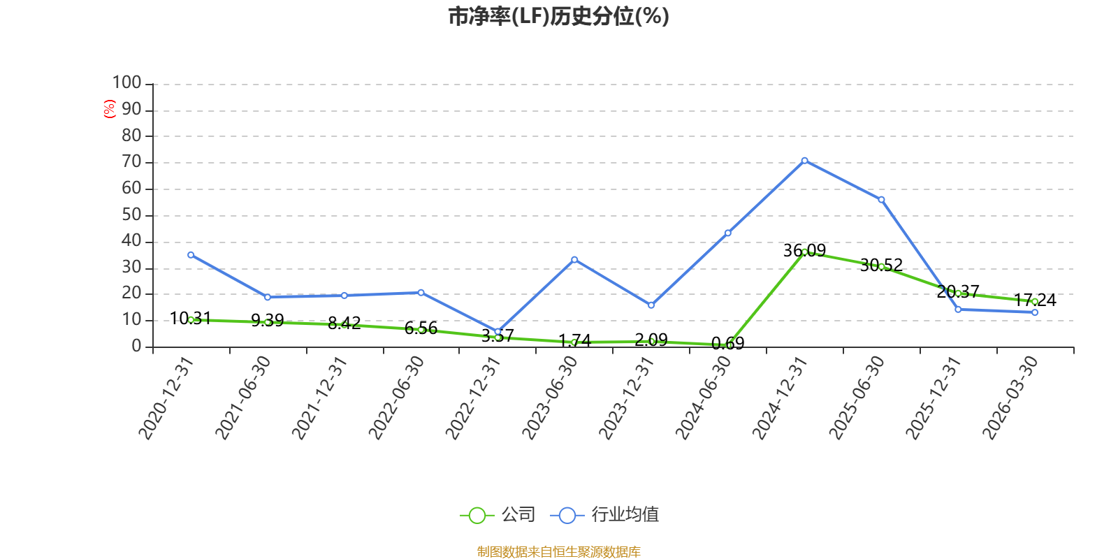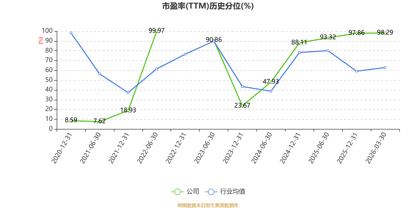 市盈率、市净率为负时,不显示当期分位数,会导致折线图中断。