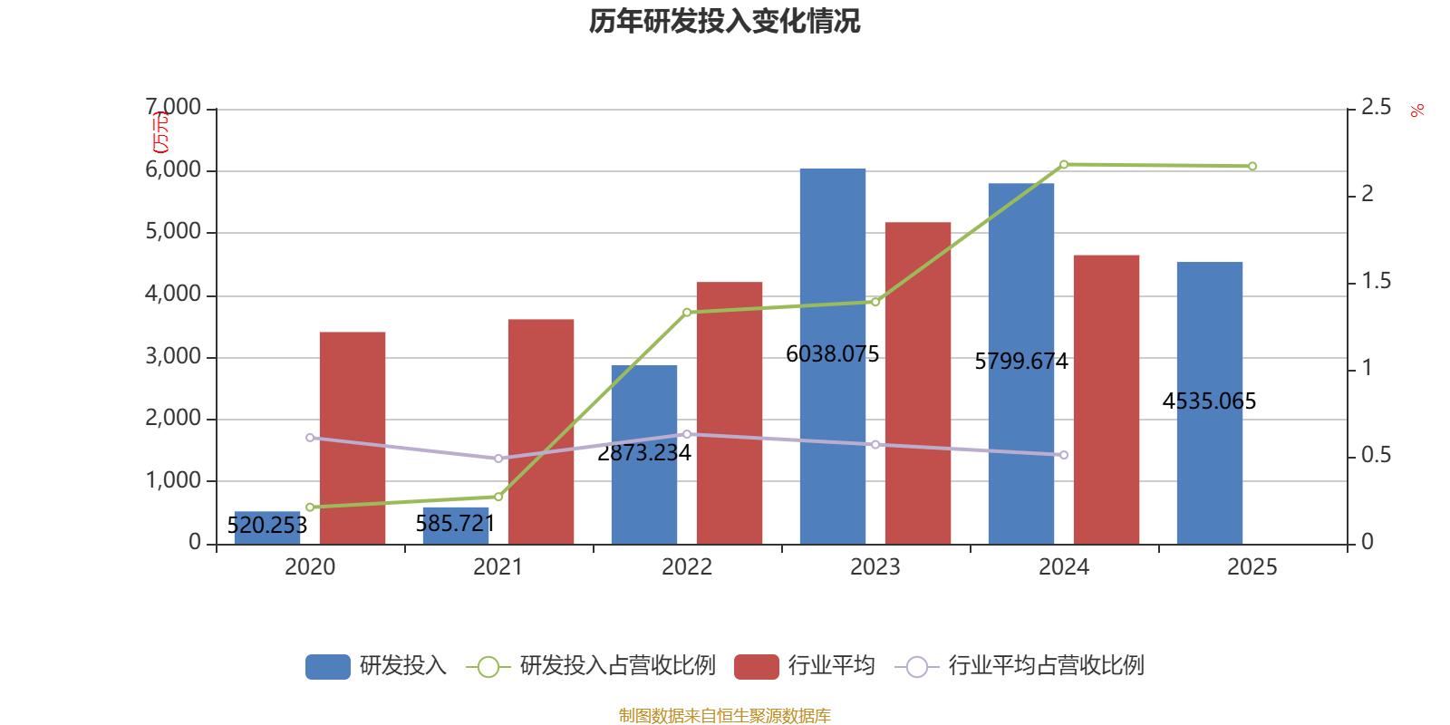 2025年全年,公司研发投入金额为4535.06万元,同比下降21.8%;研发投入占营业收入比例为2.17%,相比上年同期下降0.01个百分点。此外,公司全年研发投入资本化率为0%。