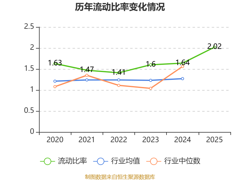 2025年,公司流动比率为2.02,速动比率为1.31。