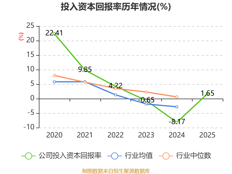 数据显示,2025年公司加权平均净资产收益率为0.98%,较上年同期上升7.26个百分点。公司2025年投入资本回报率为1.65%,较上年同期上升9.82个百分点。