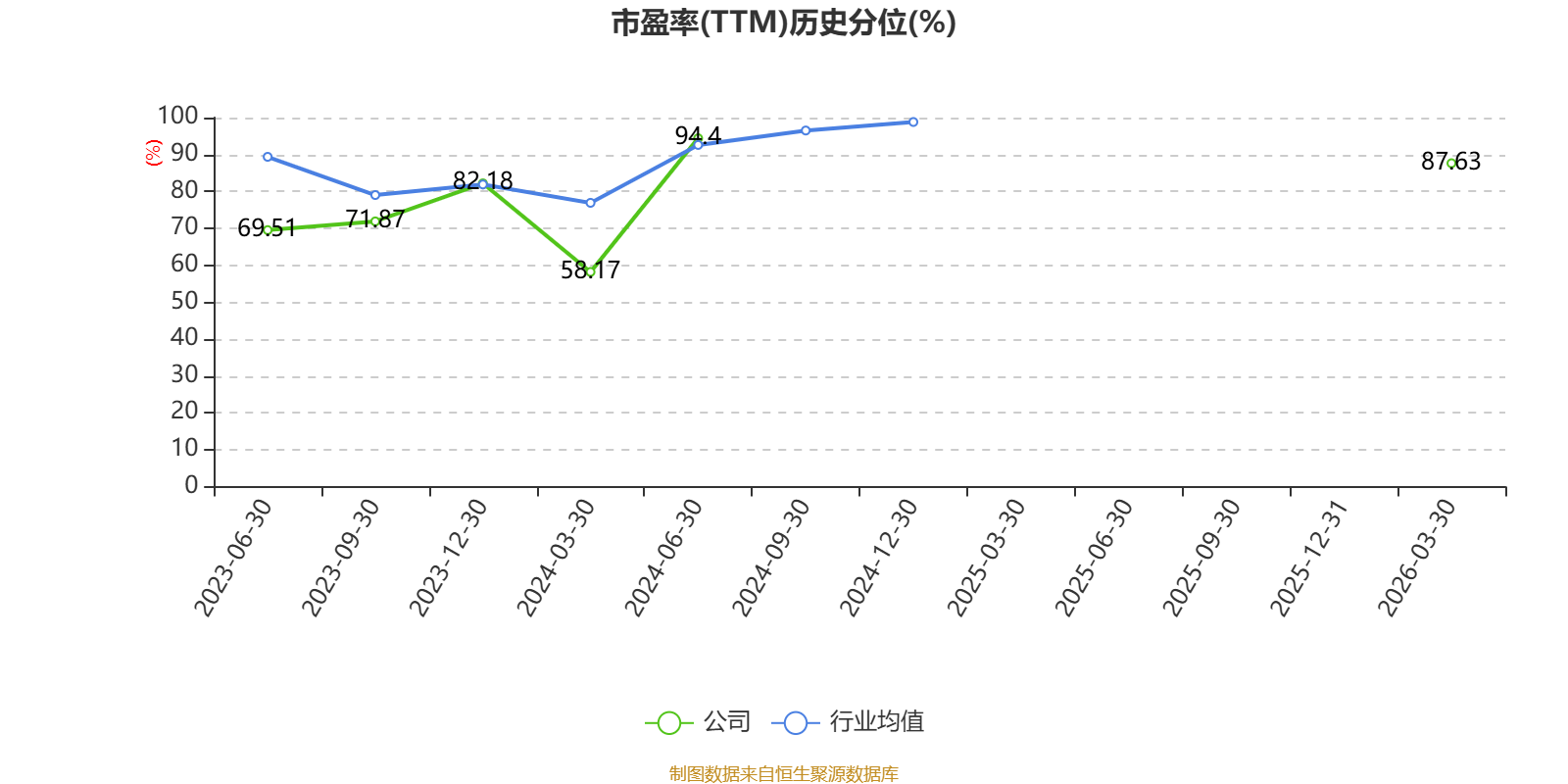 市盈率、市净率为负时,不显示当期分位数,会导致折线图中断。