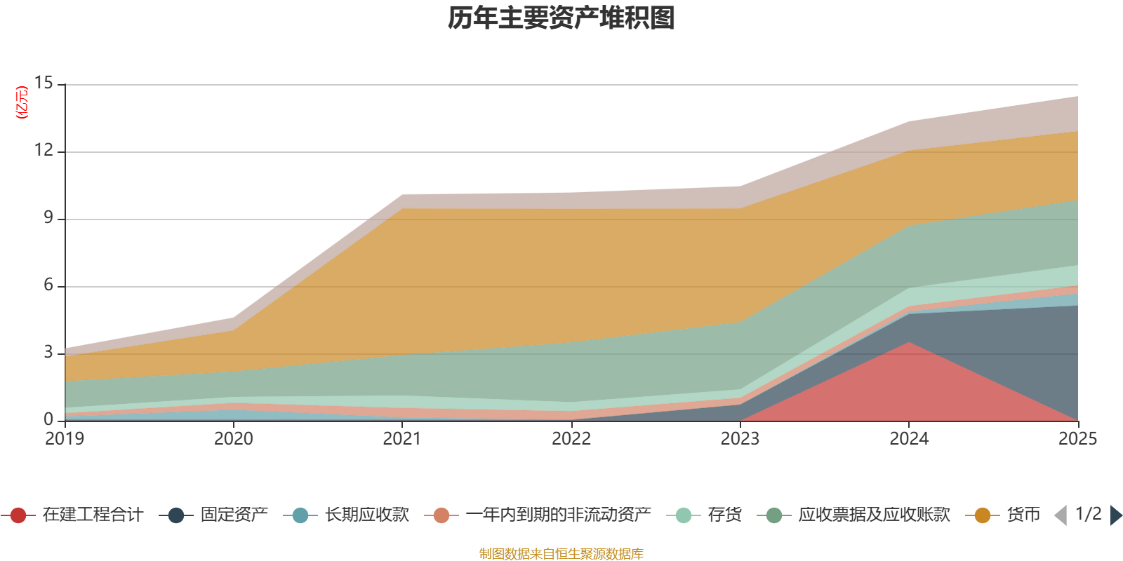 资产重大变化方面,截至2025年末,公司在建工程合计较上年末减少100%,占公司总资产比重下降26.3个百分点;固定资产较上年末增加310.71%,占公司总资产比重上升26.14个百分点;货币资金较上年末减少8.14%,占公司总资产比重下降3.83个百分点;长期应收款较上年末增加401.15%,占公司总资产比重上升2.92个百分点。