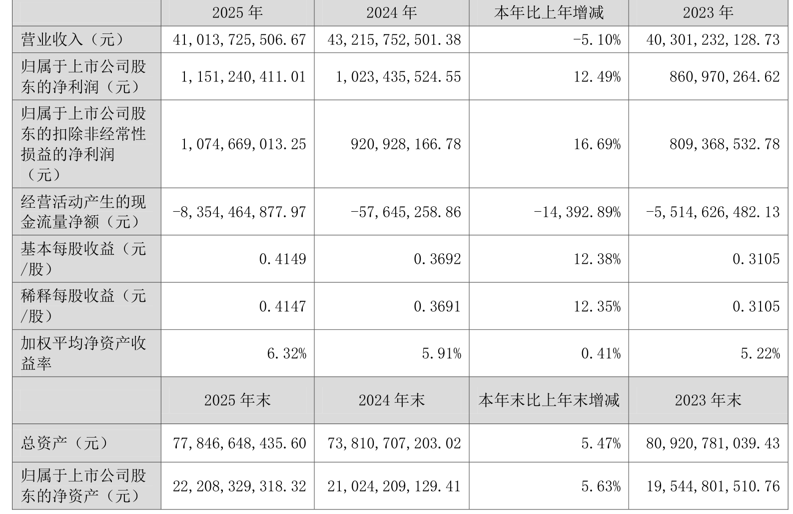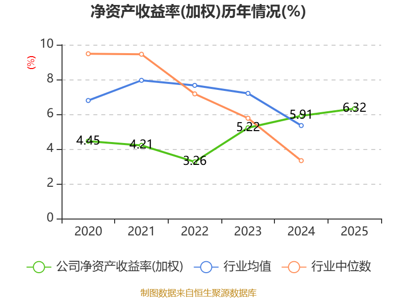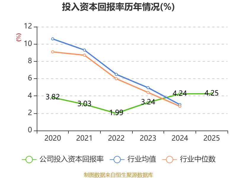 数据显示,2025年公司加权平均净资产收益率为6.32%,较上年同期上升0.41个百分点。公司2025年投入资本回报率为4.25%,较上年同期上升0.01个百分点。