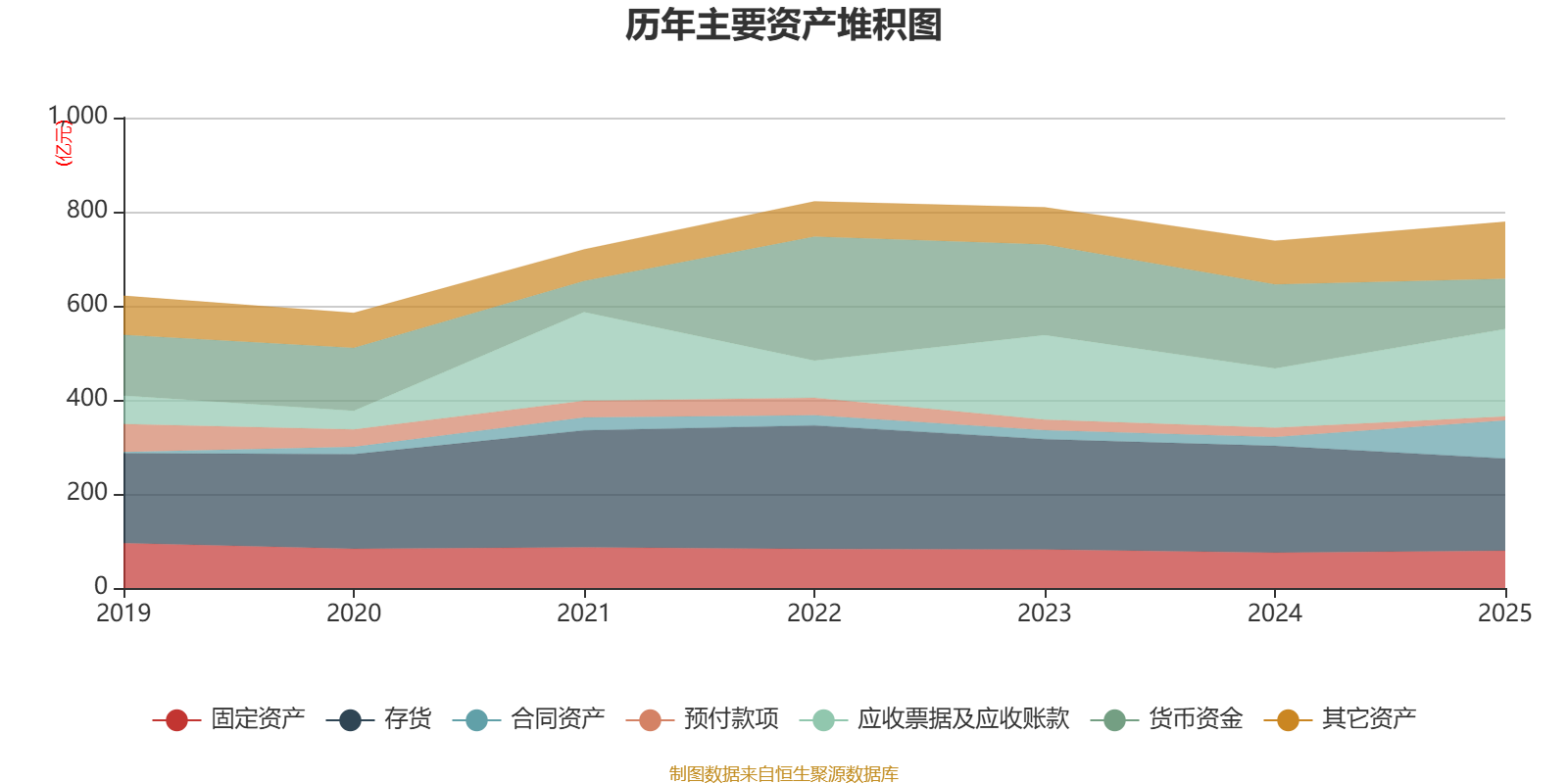 资产重大变化方面,截至2025年末,公司货币资金较上年末减少40.56%,占公司总资产比重下降10.58个百分点;合同资产较上年末增加333.65%,占公司总资产比重上升7.85个百分点;应收票据及应收账款较上年末增加47.81%,占公司总资产比重上升6.85个百分点;存货较上年末减少13.66%,占公司总资产比重下降5.57个百分点。
