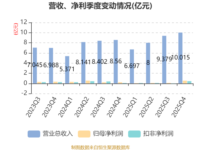 年报显示,2025年10月至12月,富春染织实现归母净利润5337.63万元,而此前公司前三季度净利润分别仅为483.53万元、860.10万元和991.13万元。盈利能力的提升源于公司退出内卷,更注重订单质量的发展思路。目前,富春染织在传统袜业领域已处于领先地位,新品市场的投入也逐渐成效,2025年第四季度盈利大幅增长,体现出公司业绩拐点已经显现,且有望保持又快又好的良性发展势头。