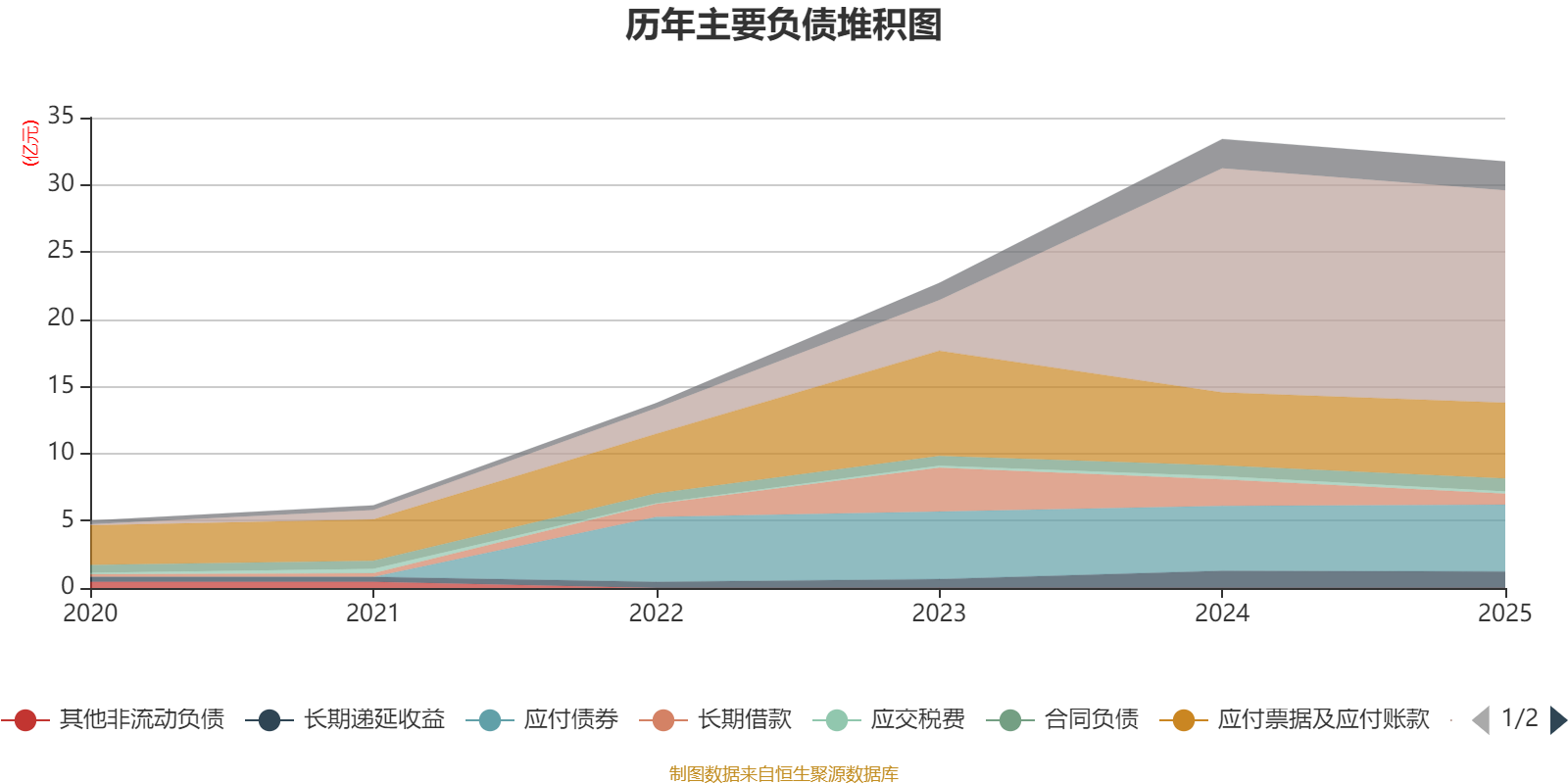负债重大变化方面,截至2025年末,公司长期借款较上年末减少58.34%,占公司总资产比重下降2.17个百分点;短期借款较上年末减少5.26%,占公司总资产比重下降1.03个百分点;一年内到期的非流动负债较上年末减少34.64%,占公司总资产比重下降0.76个百分点;其他流动负债较上年末增加60.05%,占公司总资产比重上升0.73个百分点。