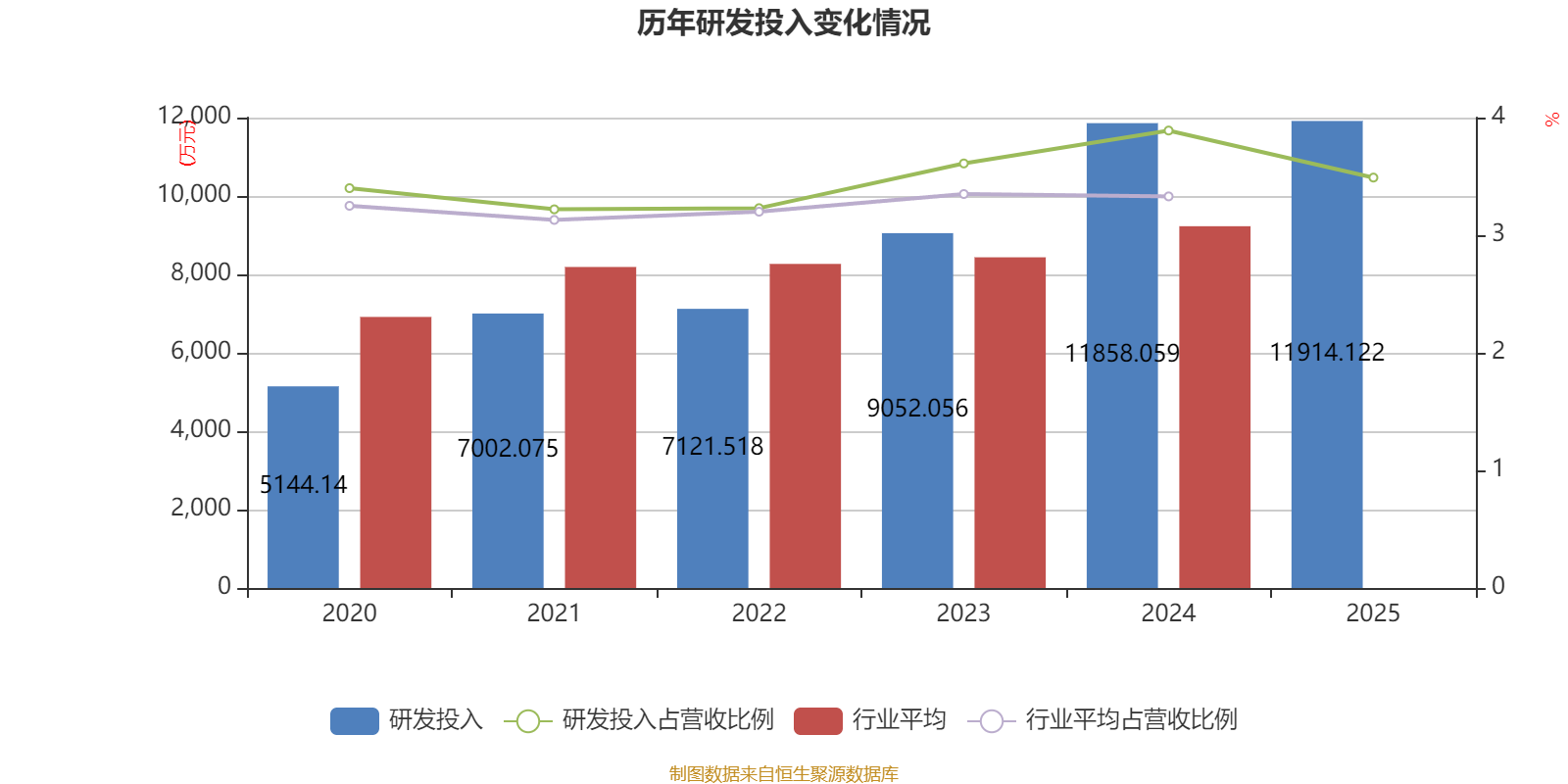 2025年全年,公司研发投入金额为1.19亿元,同比增长0.47%;研发投入占营业收入比例为3.49%,相比上年同期下降0.4个百分点。此外,公司全年研发投入资本化率为0%。
