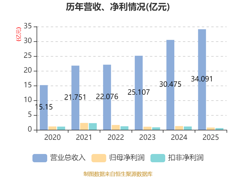 中证智能财讯富春染织(605189)3月31日披露2025年年度报告。2025年,公司实现营业总收入34.09亿元,同比增长11.87%;归母净利润7672.39万元,同比下降39.16%。虽然营业利润有所下滑,但公司产品市占率进一步提升,第四季度公司盈利能力明显改善。