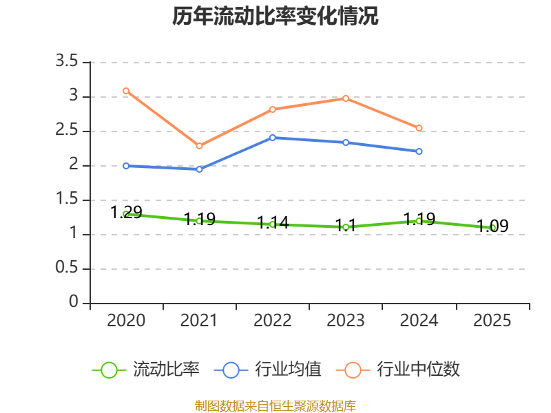 2025年,公司流动比率为1.09,速动比率为0.84。