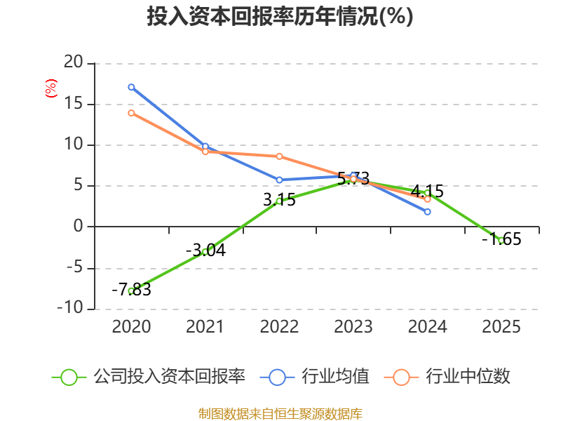 数据显示,2025年公司加权平均净资产收益率为-4.74%,较上年同期下降11.15个百分点。公司2025年投入资本回报率为-1.65%,较上年同期下降5.8个百分点。
