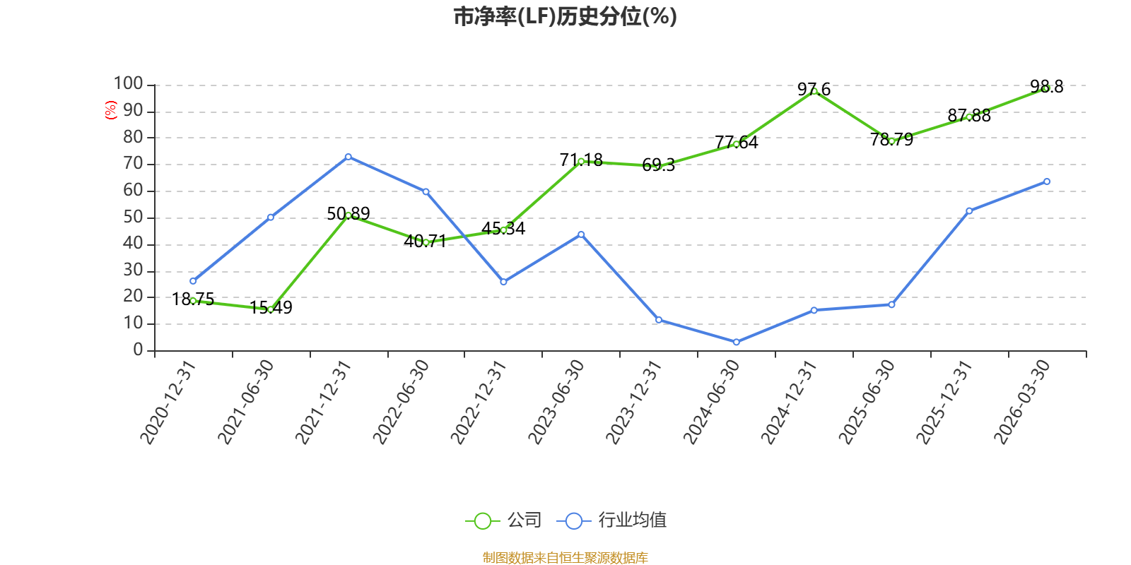 市盈率、市净率为负时,不显示当期分位数,会导致折线图中断。