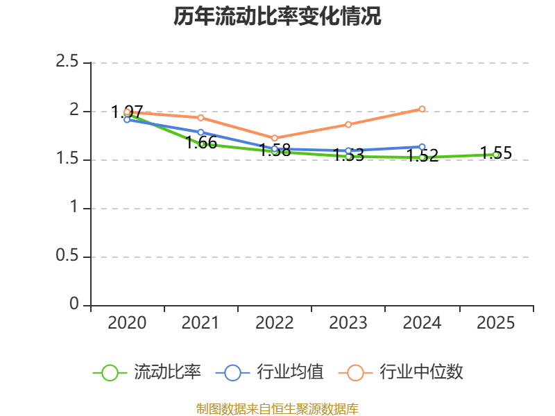 2025年,公司流动比率为1.55,速动比率为1.23。