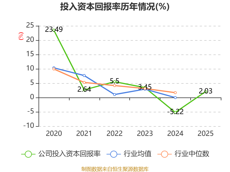 数据显示,2025年公司加权平均净资产收益率为2.61%,较上年同期上升13.22个百分点。公司2025年投入资本回报率为2.03%,较上年同期上升7.25个百分点。