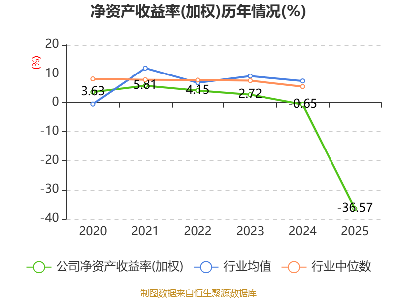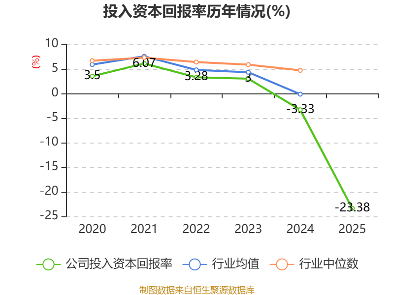 数据显示,2025年公司加权平均净资产收益率为-36.57%,较上年同期下降35.92个百分点。公司2025年投入资本回报率为-23.38%,较上年同期下降20.05个百分点。