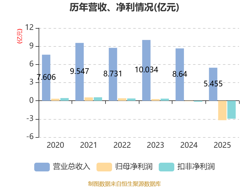 中证智能财讯华神科技(000790)3月31日披露2025年年度报告。2025年,公司实现营业总收入5.45亿元,同比下降36.86%;归母净利润亏损3.2亿元,上年同期亏损669.02万元;扣非净利润亏损2.96亿元,上年同期亏损1556.39万元;经营活动产生的现金流量净额为8537.35万元,同比增长32.82%;报告期内,华神科技基本每股收益为-0.51元,加权平均净资产收益率为-36.57%。