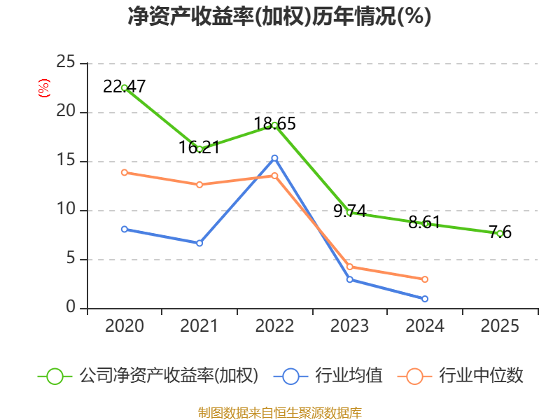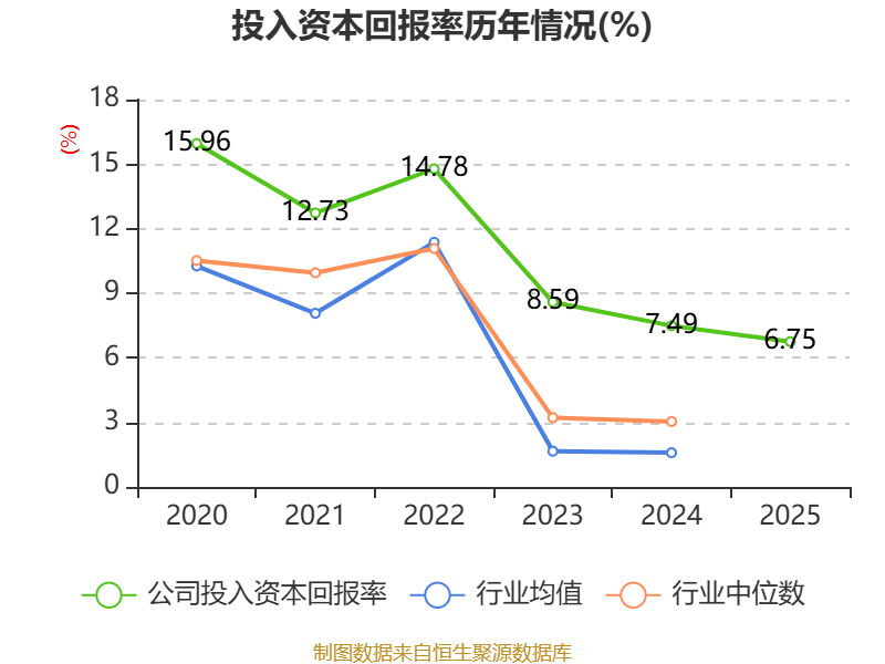 数据显示,2025年公司加权平均净资产收益率为7.6%,较上年同期下降1.01个百分点。公司2025年投入资本回报率为6.75%,较上年同期下降0.74个百分点。