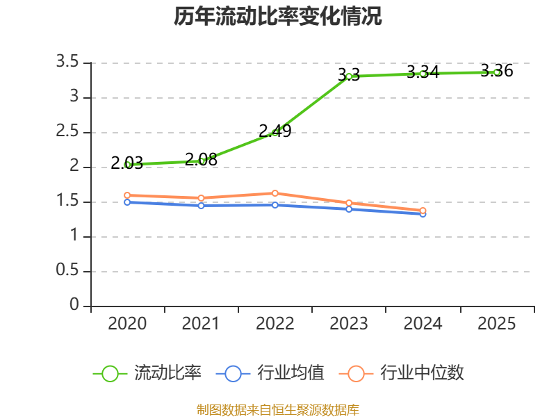 2025年,公司流动比率为3.36,速动比率为2.5。