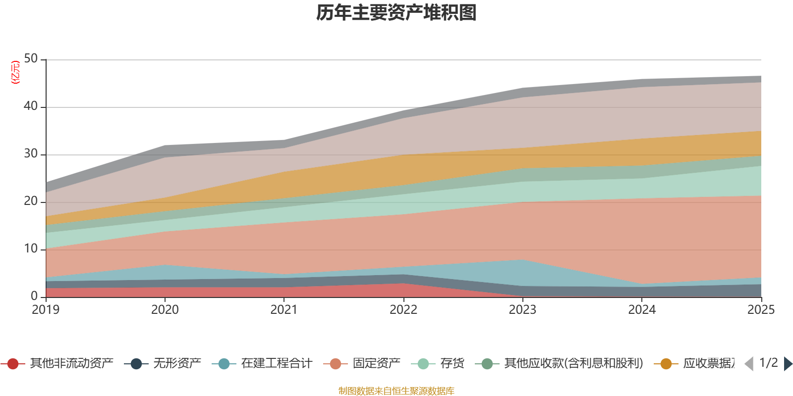 资产重大变化方面,截至2025年末,公司存货较上年末增加48.96%,占公司总资产比重上升4.27个百分点;固定资产较上年末减少4.45%,占公司总资产比重下降2.29个百分点;在建工程合计较上年末增加129.47%,占公司总资产比重上升1.74个百分点;货币资金较上年末减少5.52%,占公司总资产比重下降1.63个百分点。