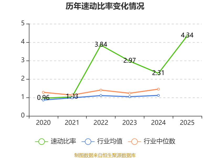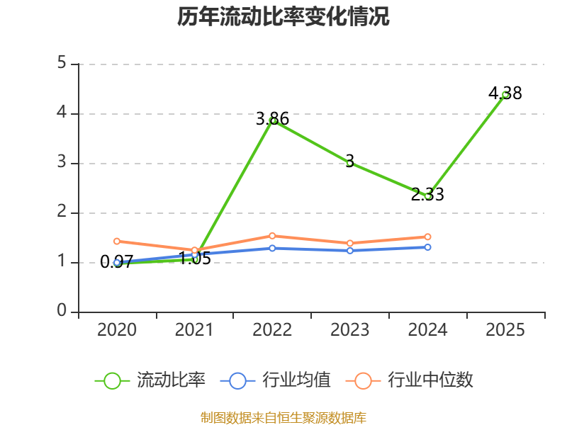 2025年,公司流动比率为4.38,速动比率为4.34。