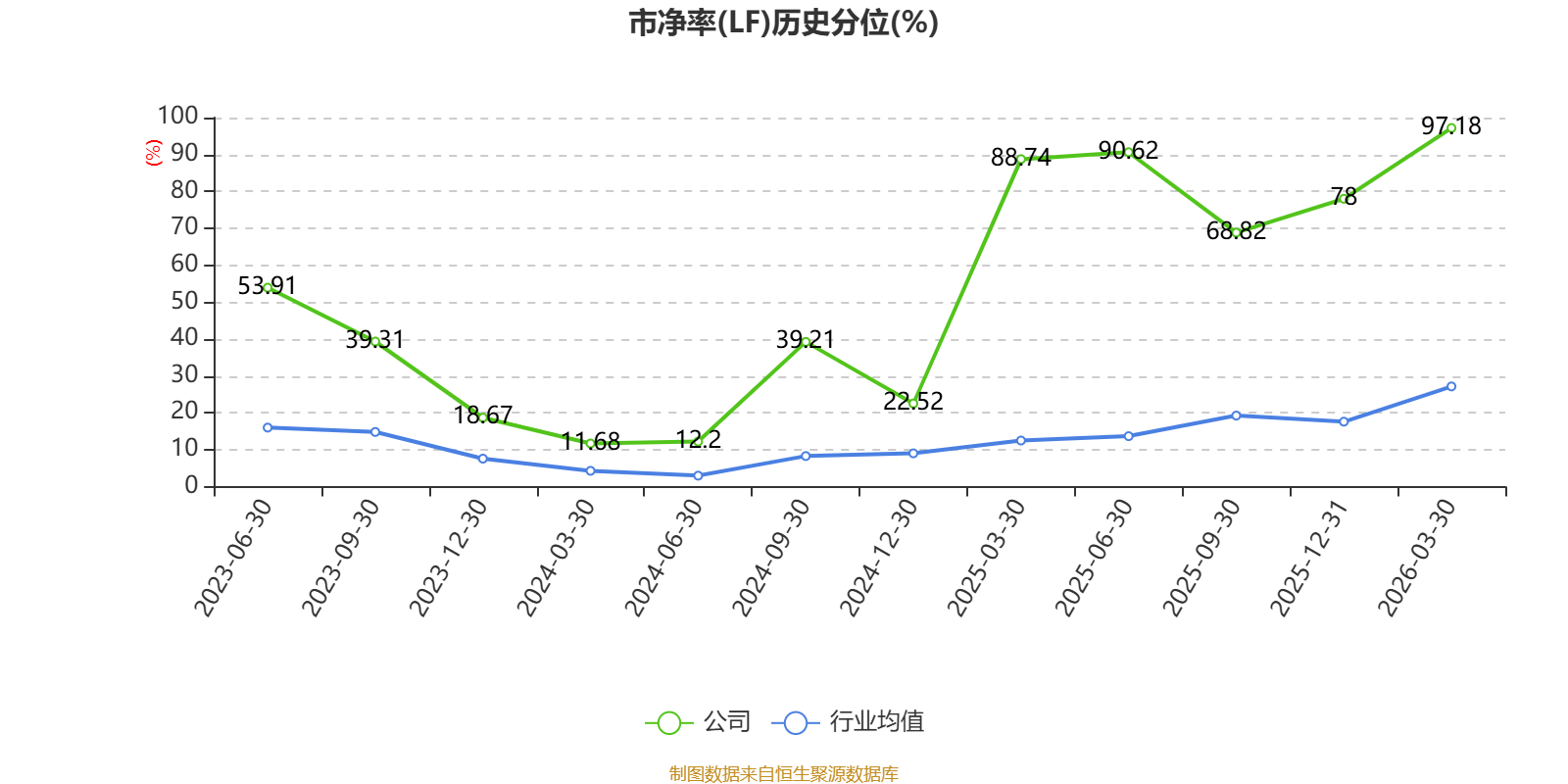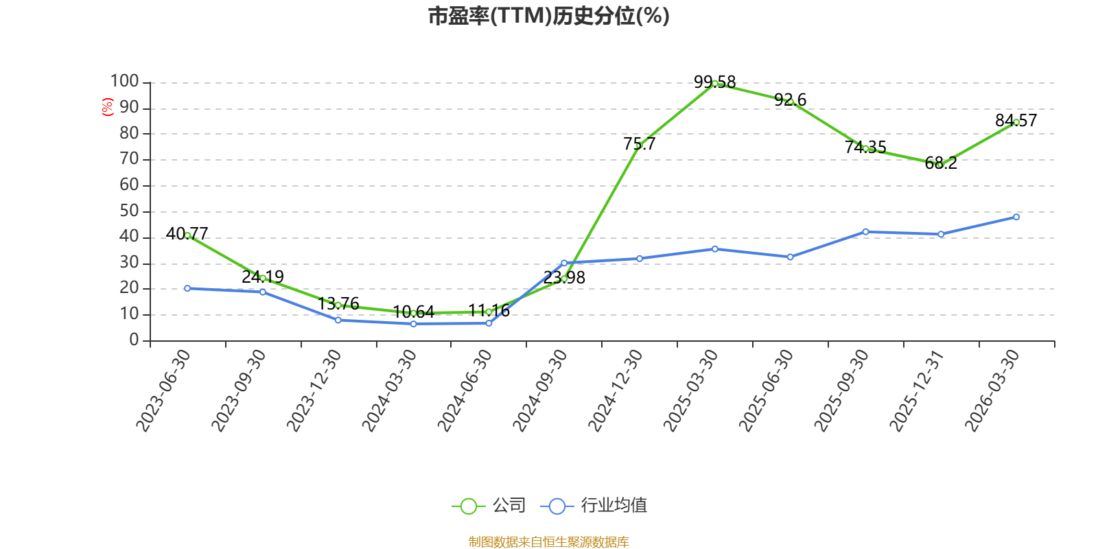 市盈率、市净率为负时,不显示当期分位数,会导致折线图中断。
