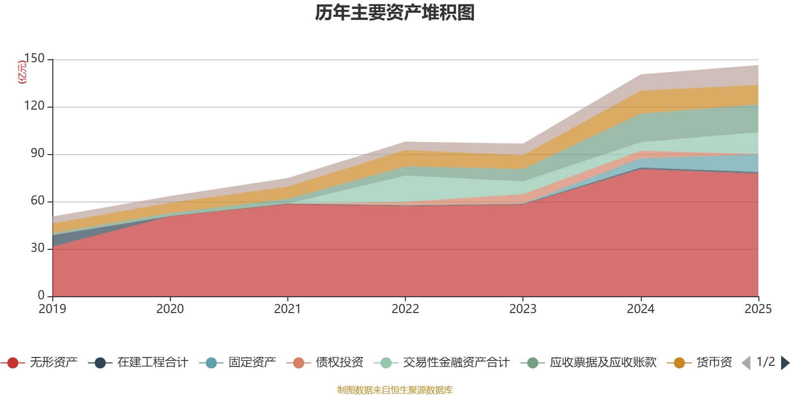 资产重大变化方面,截至2025年末,公司交易性金融资产合计较上年末增加151.7%,占公司总资产比重上升5.52个百分点;无形资产较上年末减少3.54%,占公司总资产比重下降4.22个百分点;固定资产较上年末增加92.81%,占公司总资产比重上升3.51个百分点;债权投资较上年末减少93.7%,占公司总资产比重下降3.2个百分点。