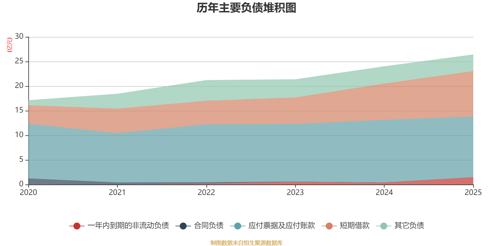 负债重大变化方面,截至2025年末,公司短期借款较上年末增加25.79%,占公司总资产比重上升3.25个百分点;应付票据及应付账款较上年末减少3.45%,占公司总资产比重下降2.73个百分点;一年内到期的非流动负债较上年末增加300.26%,占公司总资产比重上升2.42个百分点;递延所得税负债较上年末减少100%,占公司总资产比重下降0.88个百分点。