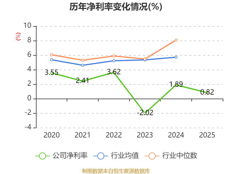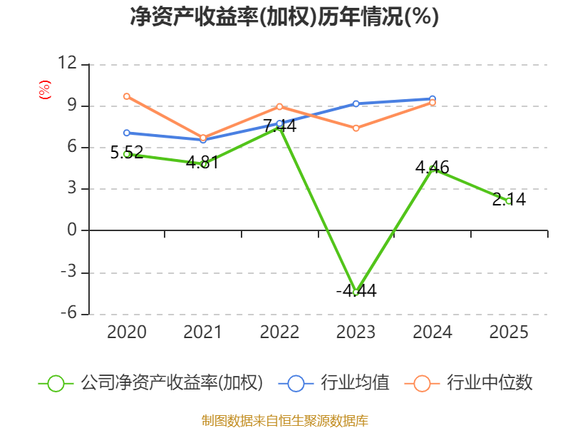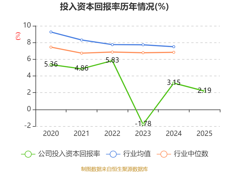 数据显示,2025年公司加权平均净资产收益率为2.14%,较上年同期下降2.32个百分点。公司2025年投入资本回报率为2.19%,较上年同期下降0.96个百分点。