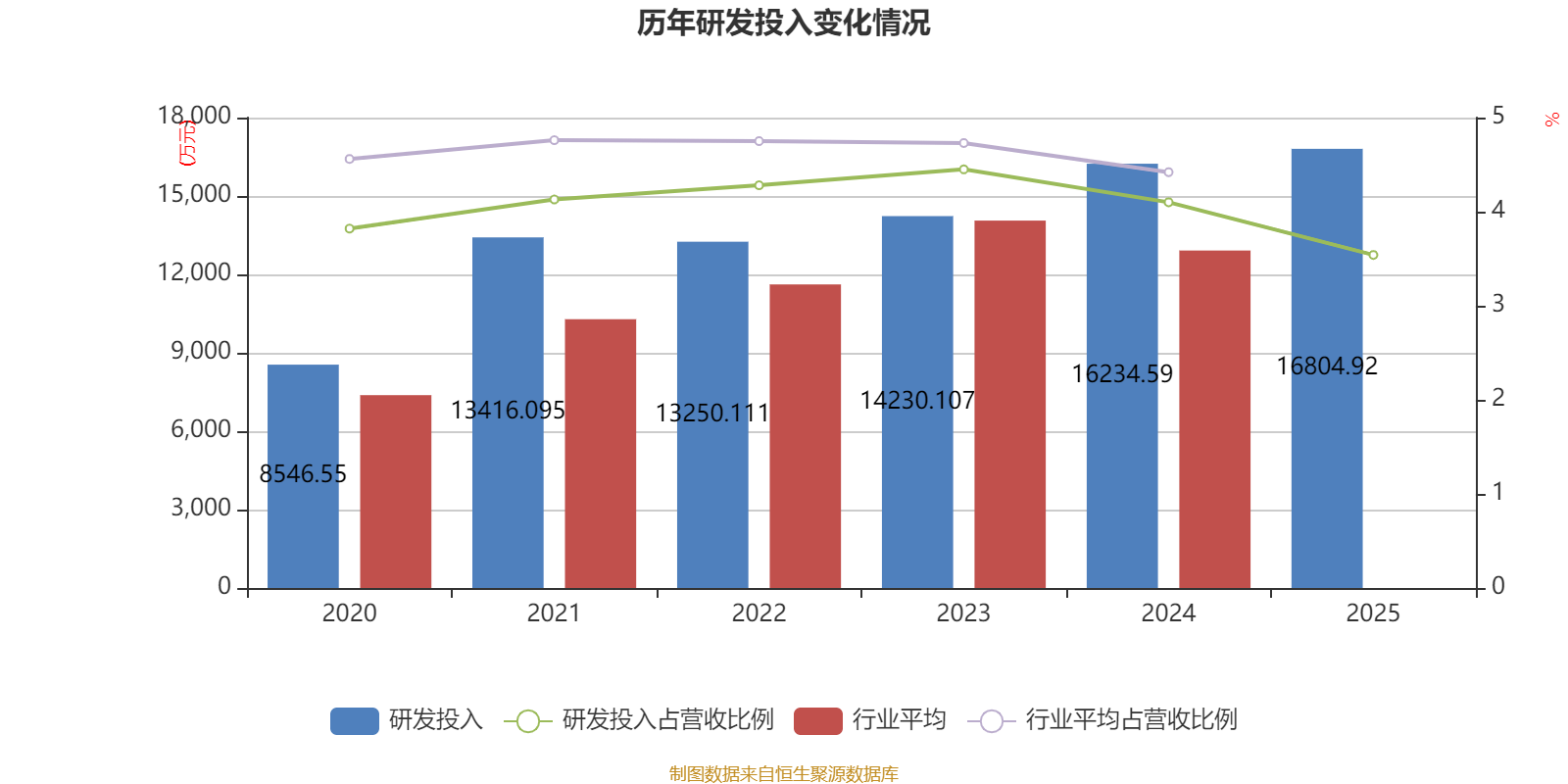 2025年全年,公司研发投入金额为1.68亿元,同比增长3.51%;研发投入占营业收入比例为3.54%,相比上年同期下降0.56个百分点。此外,公司全年研发投入资本化率为0%。