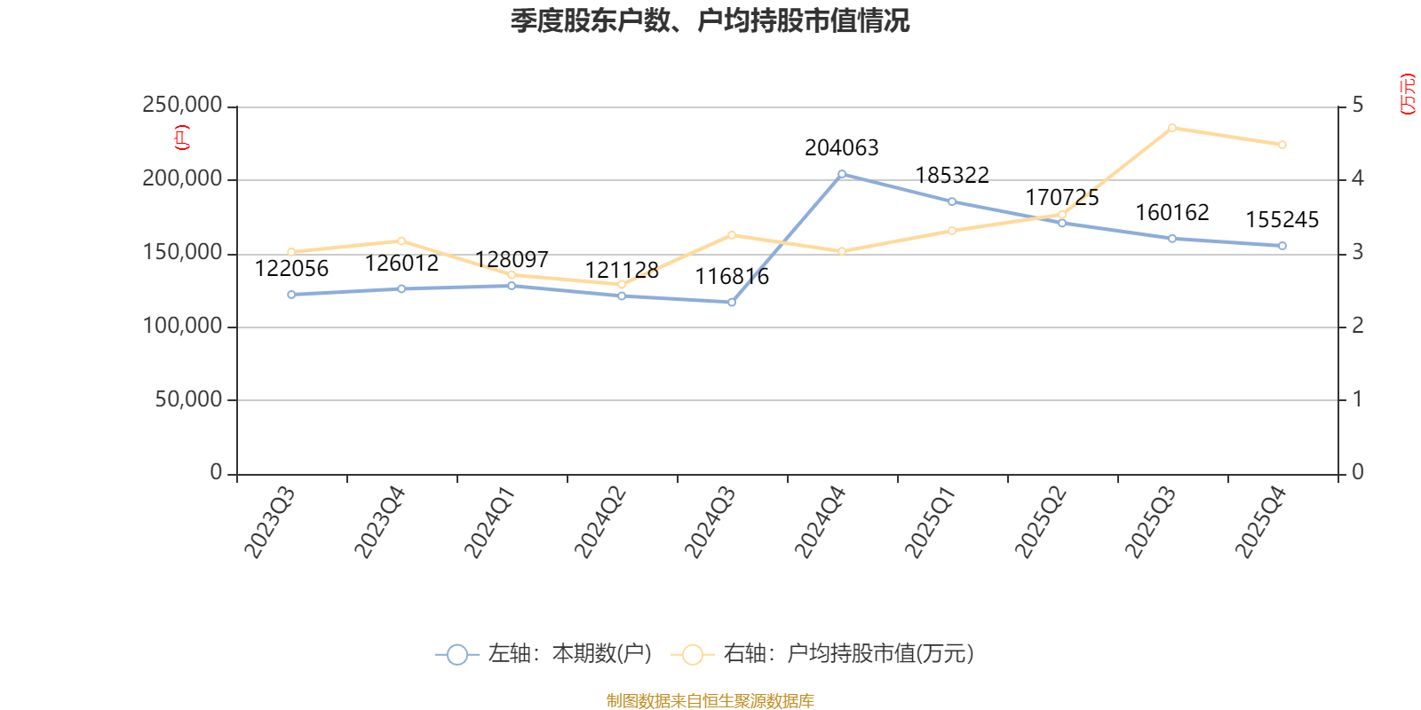 年报显示,2025年末的公司十大流通股东中,新进股东为袁菲、UBS AG、严永辉,取代了三季度末的刘丽萍、姚国成、房海泉。在具体持股比例上,四川融鑫弘梓科技有限公司、香港中央结算有限公司、丁学军持股有所上升,朱林持股有所下降。