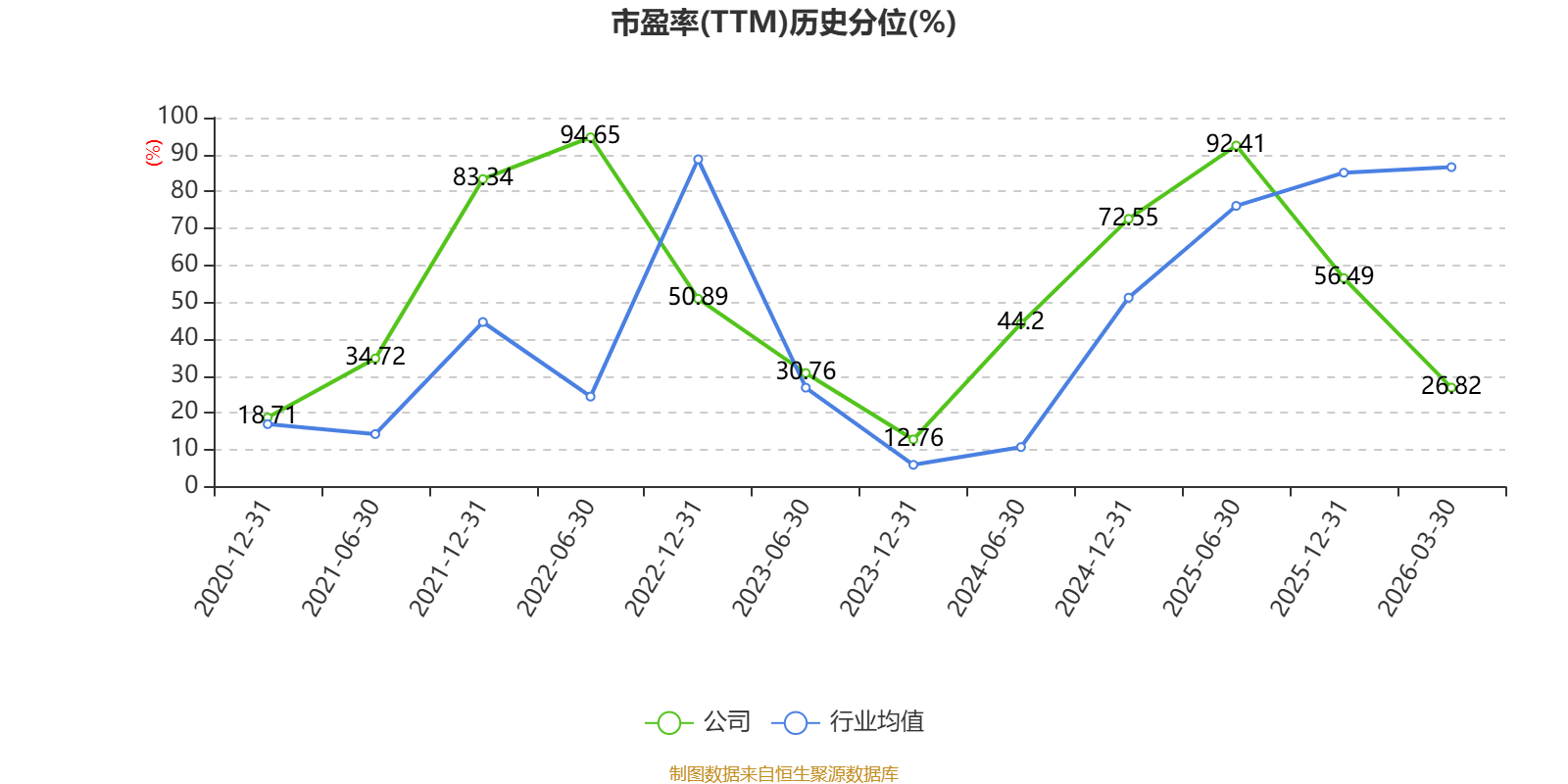 市盈率、市净率为负时,不显示当期分位数,会导致折线图中断。