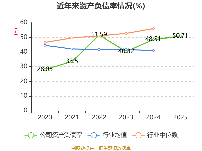 负债重大变化方面,截至2025年末,公司应付票据及应付账款较上年末增加116.08%,占公司总资产比重上升11.43个百分点;短期借款较上年末减少32.27%,占公司总资产比重下降10.29个百分点;长期借款较上年末增加31.22%,占公司总资产比重上升0.71个百分点;合同负债较上年末增加93.61%,占公司总资产比重上升0.62个百分点。