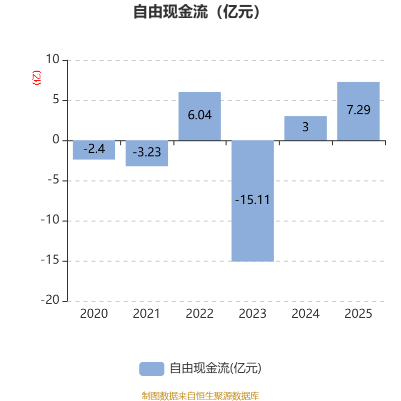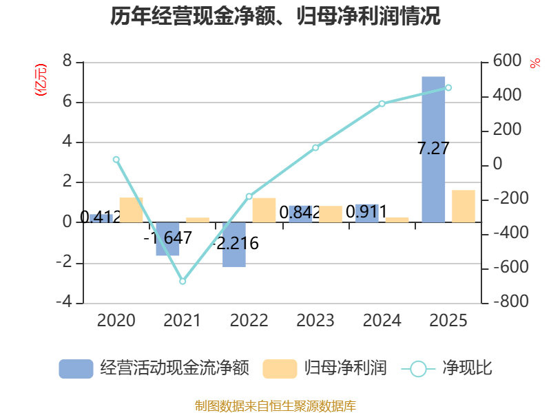 截至2025年,公司经营活动现金流净额为7.27亿元,同比增长697.71%;筹资活动现金流净额-2.93亿元,同比减少4.51亿元;投资活动现金流净额-1.83亿元,上年同期为1679.92万元。