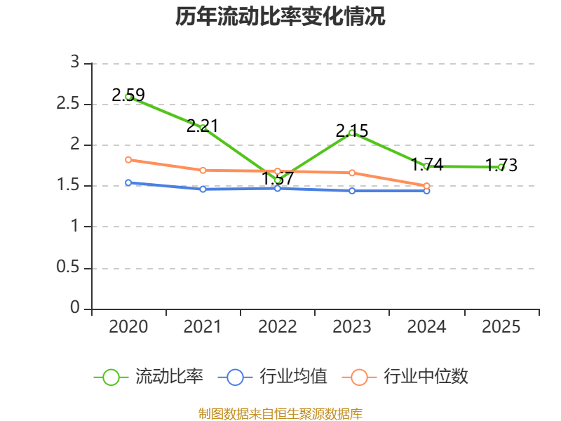 2025年,公司流动比率为1.73,速动比率为1.52。