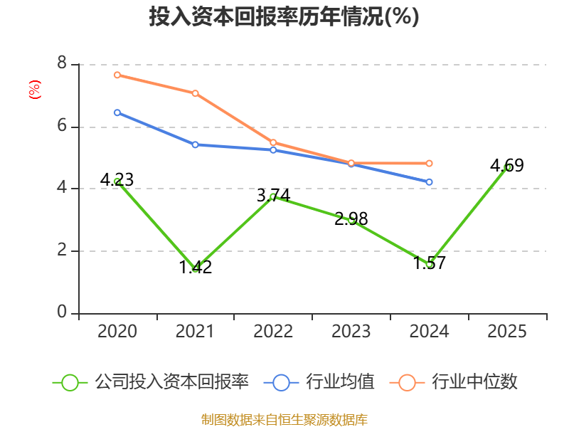 数据显示,2025年公司加权平均净资产收益率为6.15%,较上年同期上升5.16个百分点。公司2025年投入资本回报率为4.69%,较上年同期上升3.12个百分点。