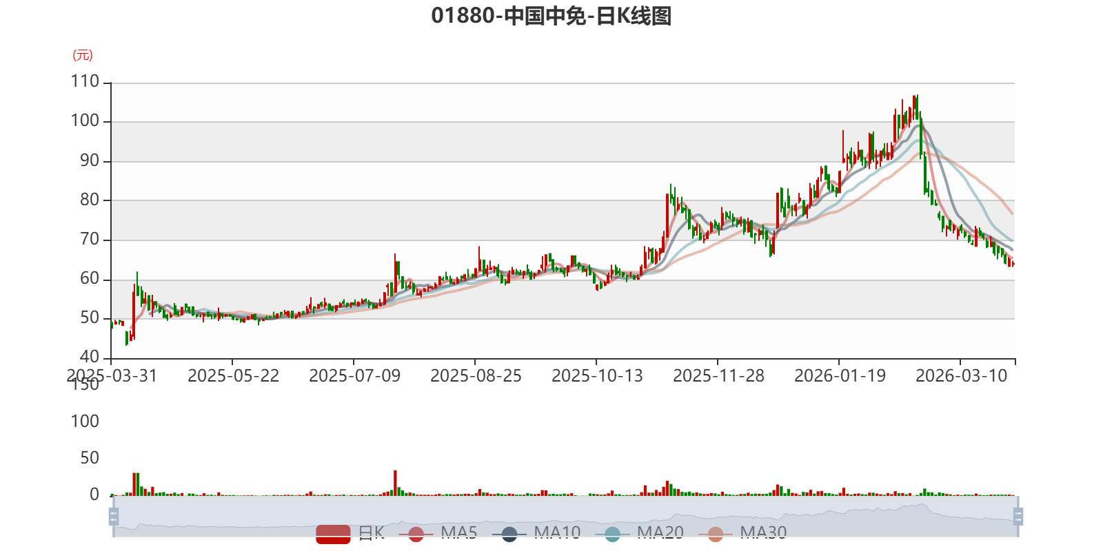 以3月30日收盘价计算,中国中免目前市盈率(TTM)约32.96倍,市净率(TTM)约2.17倍,市销率(TTM)约2.24倍。