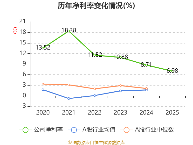数据显示,2025年公司平均净资产收益率为6.69%,较上年同期下降1.19个百分点。