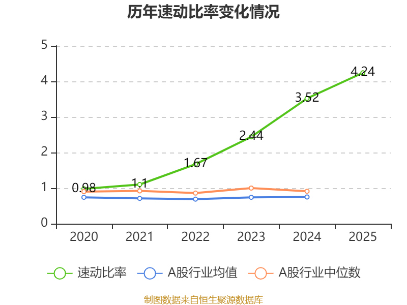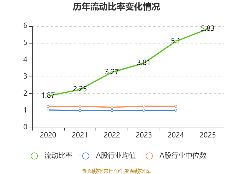 2025年,公司流动比率为5.83,速动比率为4.24。