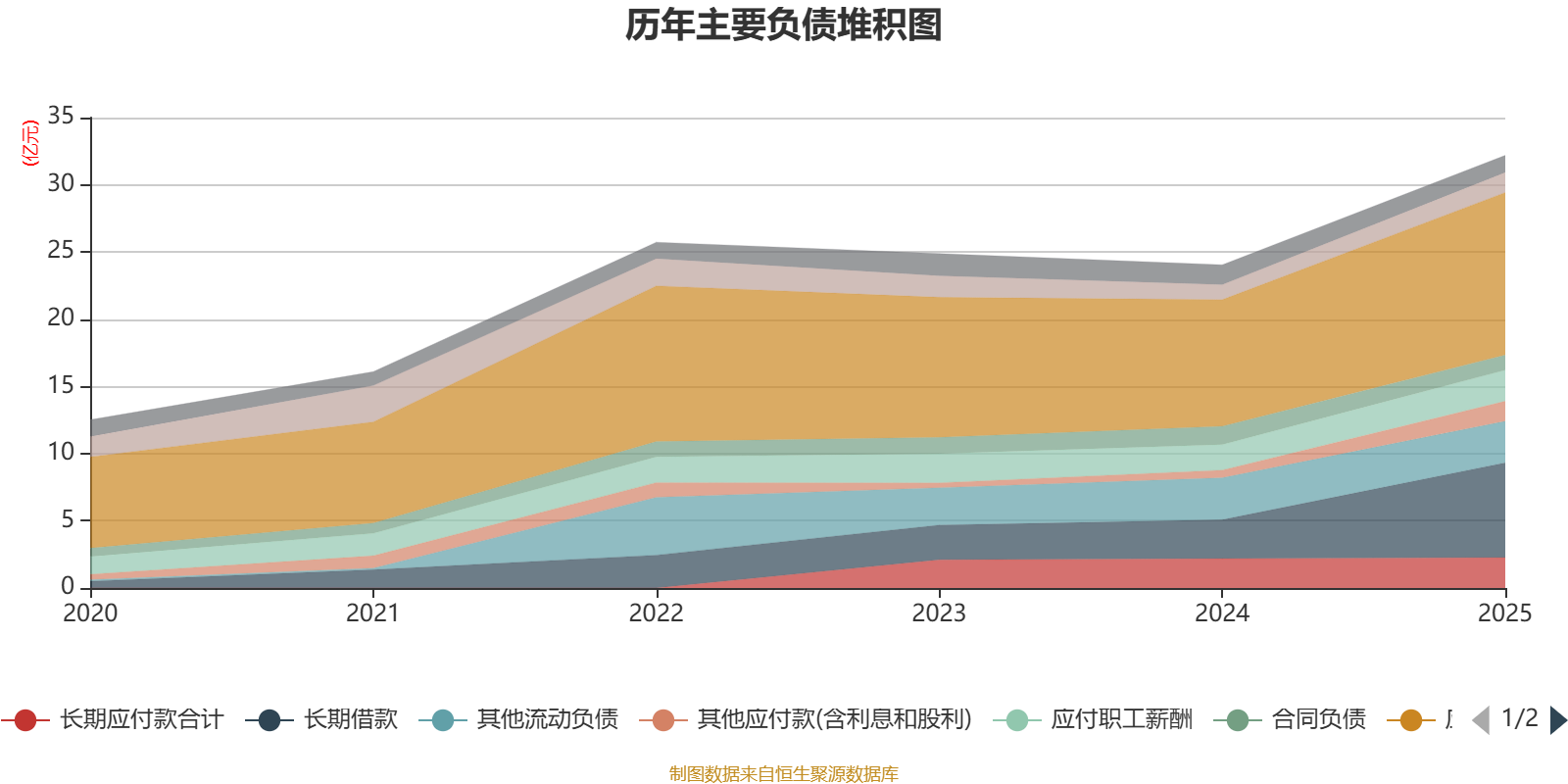 负债重大变化方面,截至2025年末,公司长期借款较上年末增加143.61%,占公司总资产比重上升5.76个百分点;应付票据及应付账款较上年末增加28.31%,占公司总资产比重上升1.49个百分点;其他应付款(含利息和股利)较上年末增加158.31%,占公司总资产比重上升1.28个百分点;其他流动负债较上年末减少0.97%,占公司总资产比重下降0.96个百分点。