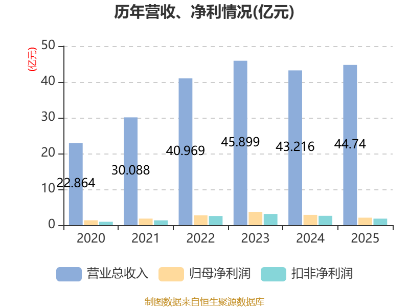 中证智能财讯英威腾(002334)3月31日披露2025年年度报告。2025年,公司实现营业总收入44.74亿元,同比增长3.52%;归母净利润2.08亿元,同比下降27.33%;扣非净利润1.81亿元,同比下降30.25%;经营活动产生的现金流量净额为4.41亿元,同比增长6.30%;报告期内,英威腾基本每股收益为0.2589元,加权平均净资产收益率为6.91%。公司2025年度分配预案为:拟向全体股东每10股派现0.6元(含税)。