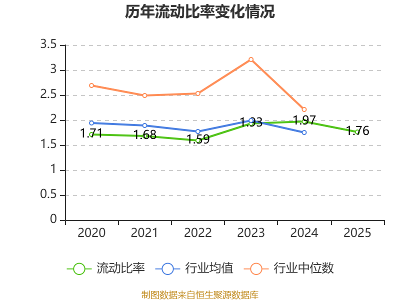2025年,公司流动比率为1.76,速动比率为1.46。