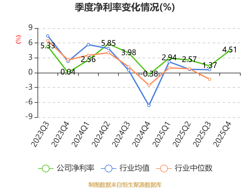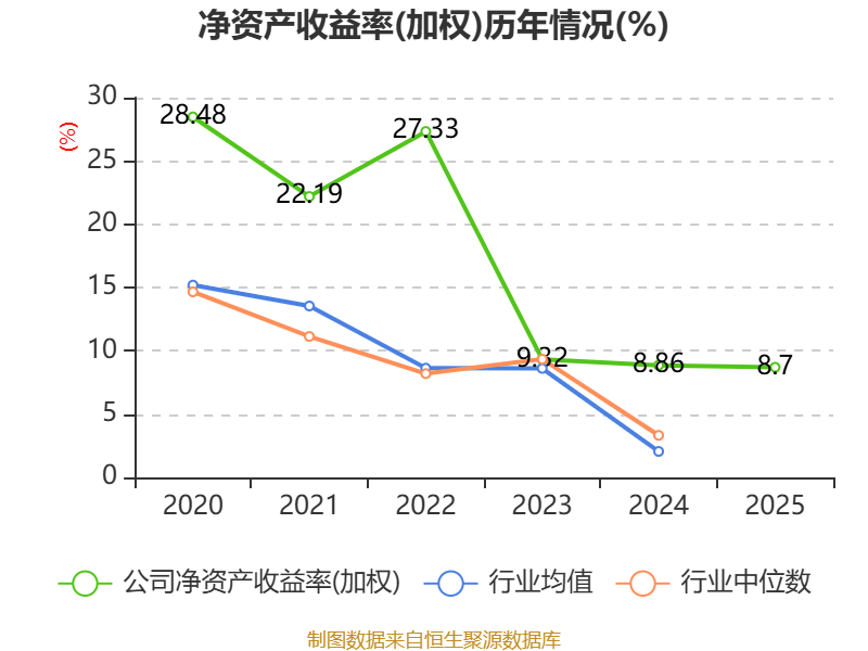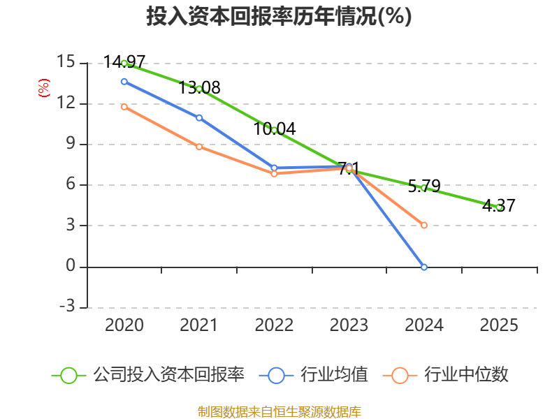 数据显示,2025年公司加权平均净资产收益率为8.7%,较上年同期下降0.16个百分点。公司2025年投入资本回报率为4.37%,较上年同期下降1.42个百分点。