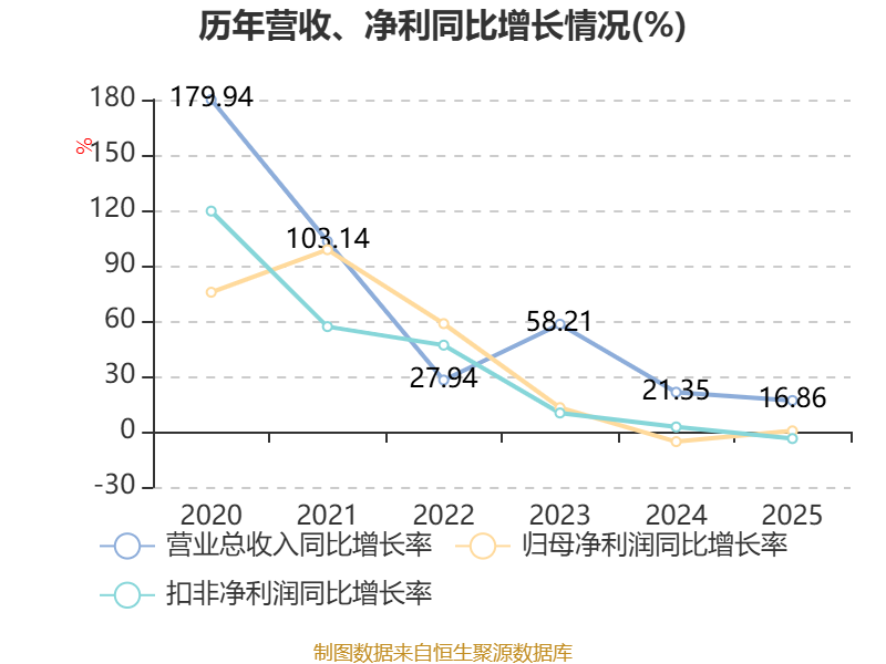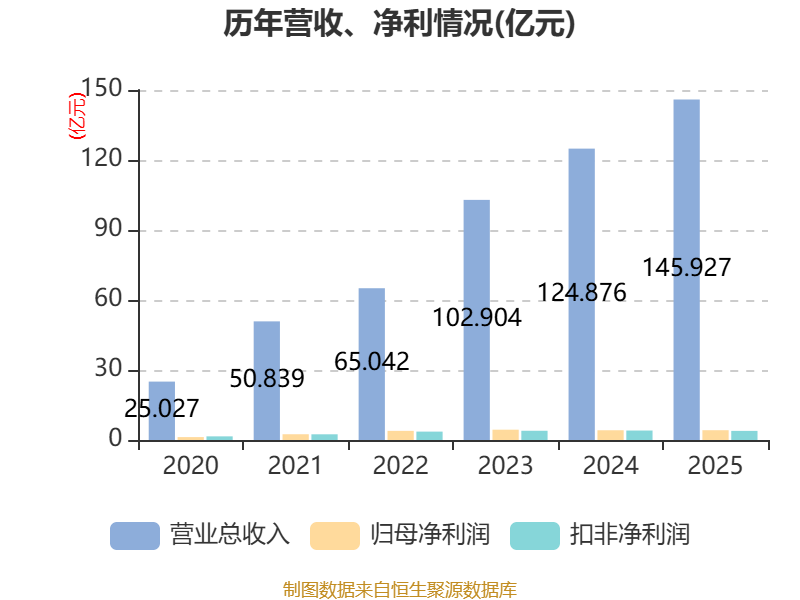 中证智能财讯聚和材料(688503)3月31日披露2025年年度报告。2025年,公司实现营业总收入145.93亿元,同比增长16.86%;归母净利润4.2亿元,同比增长0.40%;扣非净利润3.9亿元,同比下降3.77%;经营活动产生的现金流量净额为-30.69亿元,上年同期为-8.95亿元;报告期内,聚和材料基本每股收益为1.82元,加权平均净资产收益率为8.70%。公司2025年度分配预案为:拟向全体股东每10股派现4.32元(含税)。