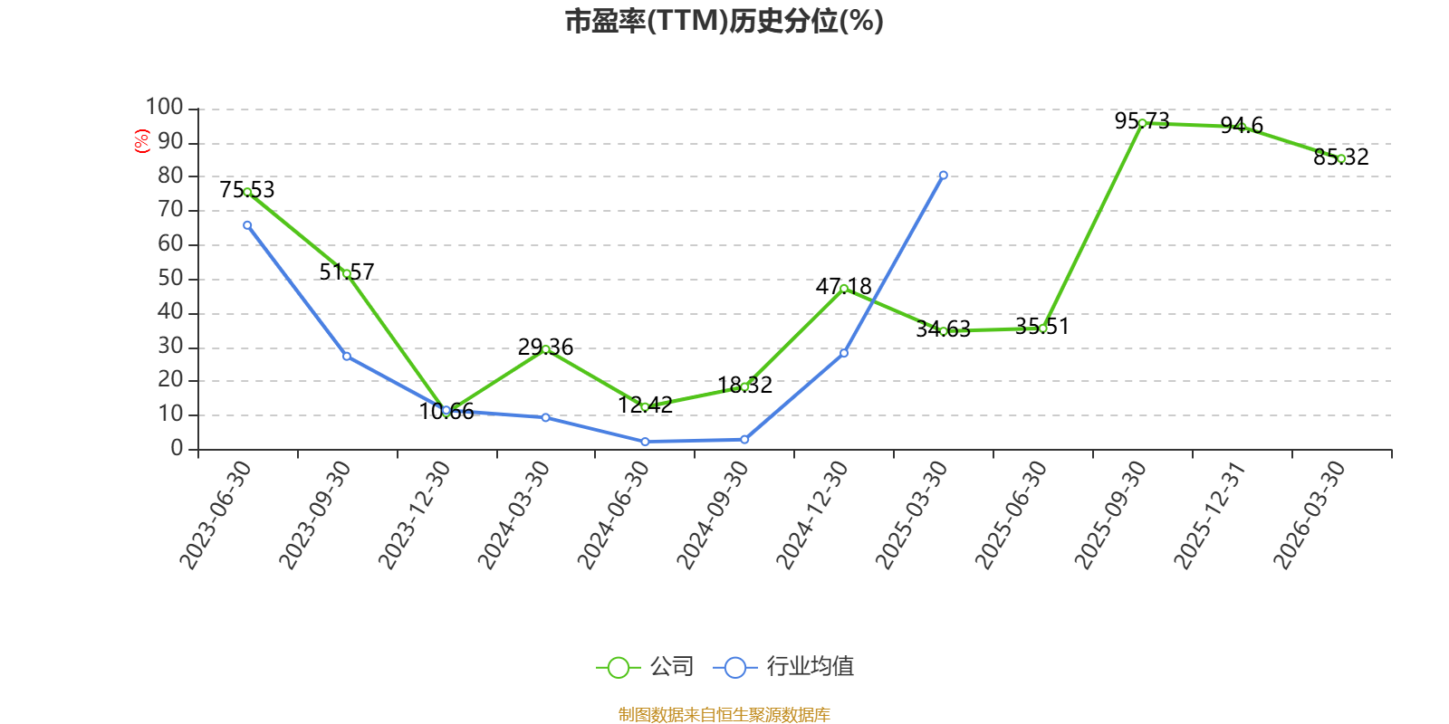 市盈率、市净率为负时,不显示当期分位数,会导致折线图中断。